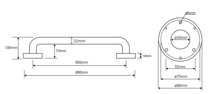 - Длина поручня: 800 мм