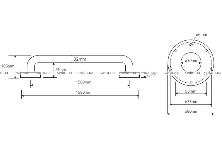 - Длина поручня: 1500 мм