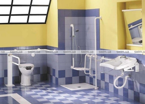 В коллекции Kerasan Disabili представлены модели для пожилых людей, людей с ограниченными возможностями и инвалидов. Здесь можно найти различные специальные поручни, унитазы/биде, раковину с регулируемыми опорами, зеркало ориентируемое и даже сидение переносное. Все эти товары придуманы для того, чтобы облегчить принятие ванны или душа и перемещение людей с ограниченными возможностями в ванной комнате и санузле.