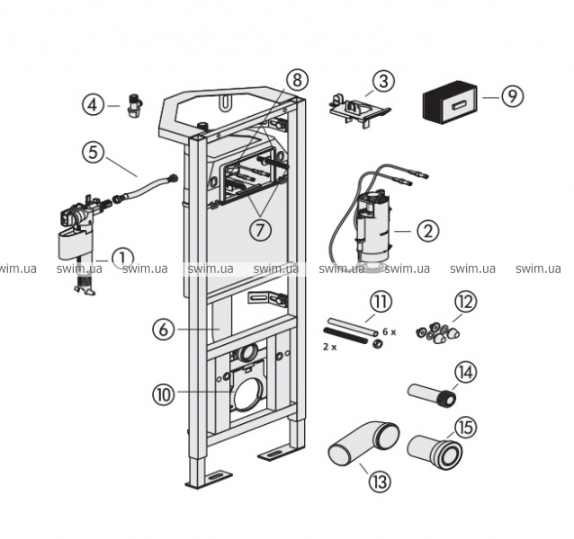 Прижим к смывным бачкам Sanit 995SC, CC-200-S-FO-2V-2C с малым ревизионным отверстием
