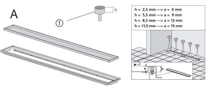 SANIT Набор колпачков (4х20 контактов, 20 рукавов соединения) для коррекции по высоте дренажного канала с последующей облицовкой плиткой