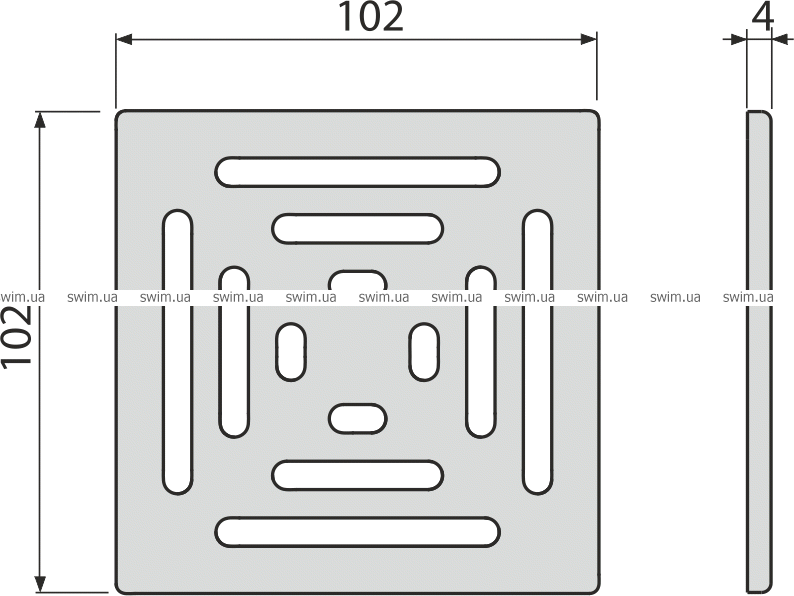 MPV012 - Решетка для cливных трапов из нержавеющей стали 102×102 мм, нержавеющая сталь