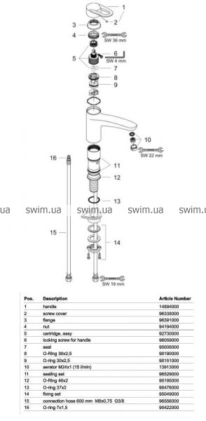 • Рукоятка смесителя Hansgrohe Metropol E и Metropol для смесителя для раковины