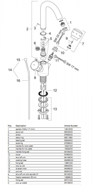 - Рукоятка для Mondial, смесителя для раковины, холодная вода