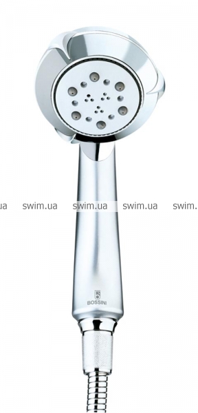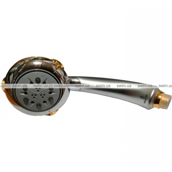 Представлену тут п'ятиструминну ручну лійку B00096 серії Compact від Bossini виготовлено з високоякісного пластику із золотисто-хромованим покриттям, має діаметр душової поверхні 9 см, а також обладнано різзю для приєднання душового шланга під діаметр 1/2".