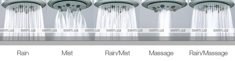 - Особливості Режими струменя: Rain /Mist / Rain/Mist / Massage / Rain/Massage