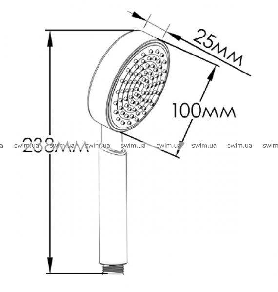 Ручна одноструминна лійка для душу Елен від Mixxen, має діаметр душової поверхні 10 см, виконана з ABS-пластику з хромованим покриттям, та оснащується універсальним підведенням для підключення душового шланга під діаметр 1/2".