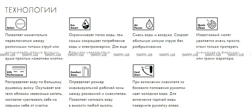 - тип струи: Rain, Shampoo, Normal, Massage