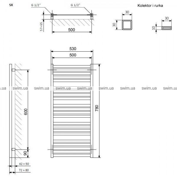 - Комплектація інструкція з експлуатації, рушникосушка - 1шт.