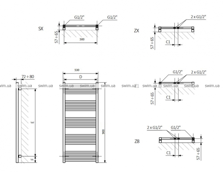 Рушникосушка Terma Fiona WGFIN090053KS96SX 90х53 см