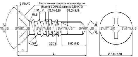 - Діаметр різьблення кріпильного виробу 3.9 мм
