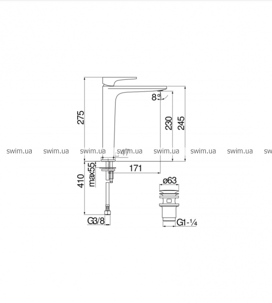 • Додаткові параметри: Матове покриття / З донним клапаном
