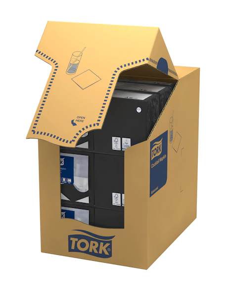 - Готові для продажу коробки Easy Handling® Tork зручно переносити, утилізувати та використовувати для дисплея продукції.