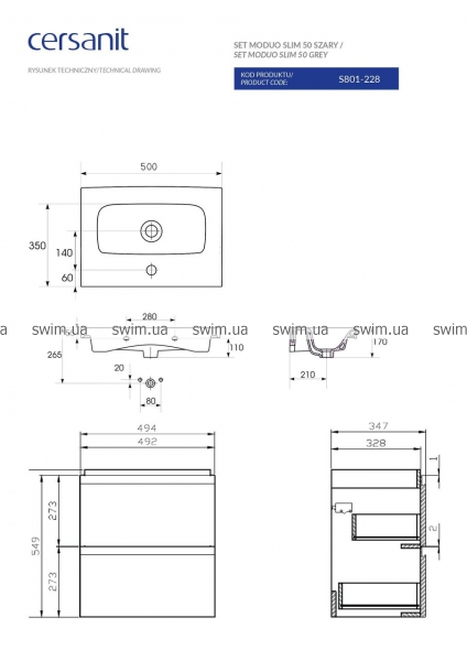 → Тумба з умивальником Cersanit B03 Moduo Slim 50 сірий