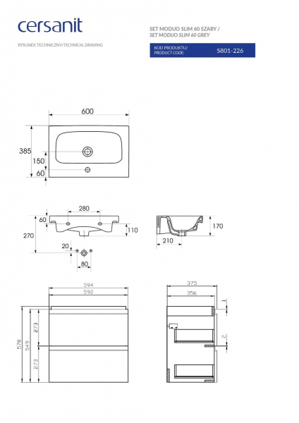 Тумба з раковиною Cersanit B05 Moduo Slim 60 сірий
