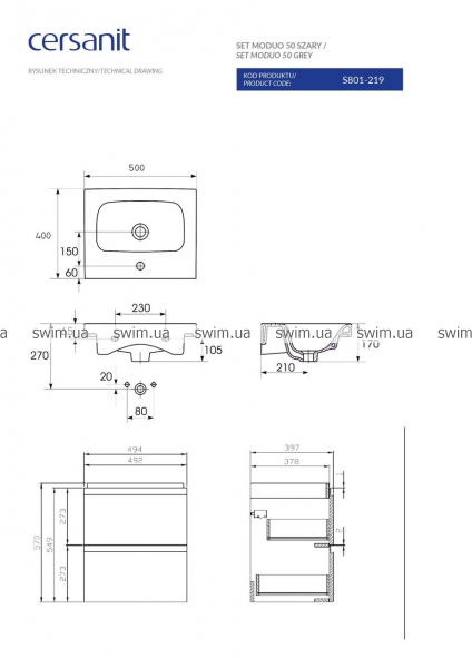 Тумба з раковиною Cersanit B11 Moduo 50 сірий