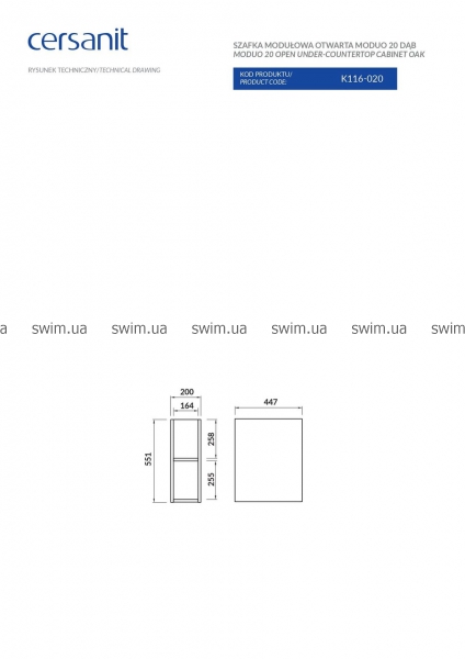 Шафка під стільницю Cersanit Moduo 20 дуб
