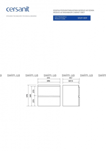 Тумба під умивальник Cersanit Moduo 60 сіра
