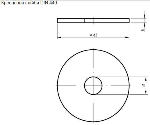 Конструктивна особливість шайби DIN 440 полягає у великому зовнішньому діаметрі. Меблева шайба DIN 440 застосовується для збільшення притискної площі кріплення, таким чином зменшується тиск на поверхню, що дозволяє уникнути пошкодження. Використовується це кріплення найчастіше для дерев'яних конструкцій.