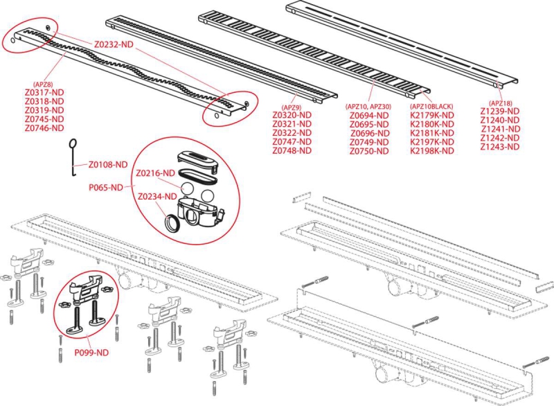 для APZ8,APZ9,APZ10, APZ18 (550, 650, 750, 850, 950) мм.