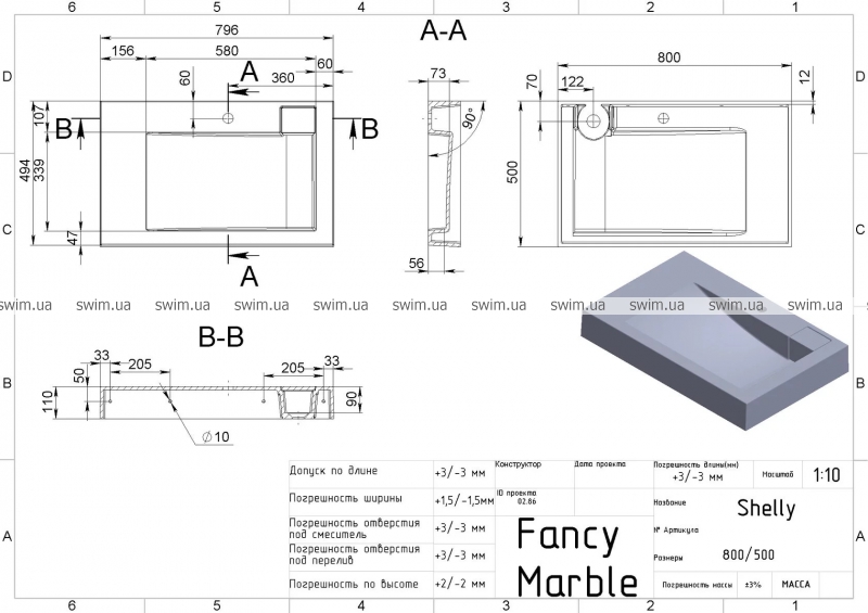 Умивальник Fancy Marble Shelly 800 8708101