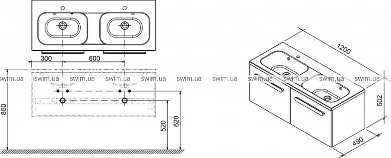 - Шкафчик предназначен для установки под двойной умывальник Chrome 1200