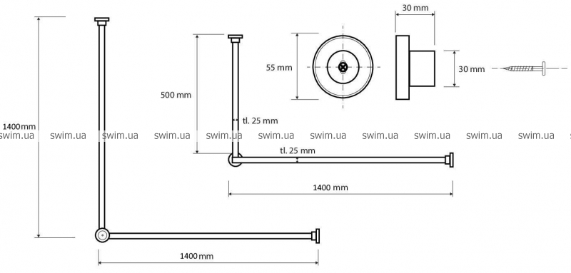 - Диаметр штанги: 25 мм