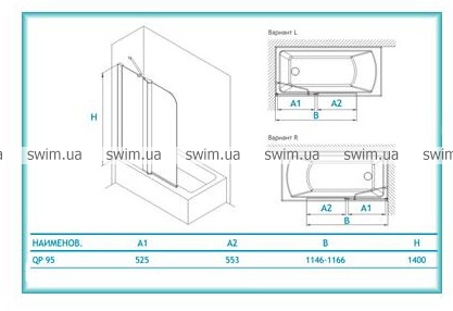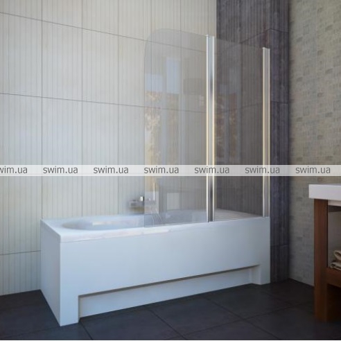 - Двухэлементная профильная шторка на ванну в комплекте с хромированным держателем