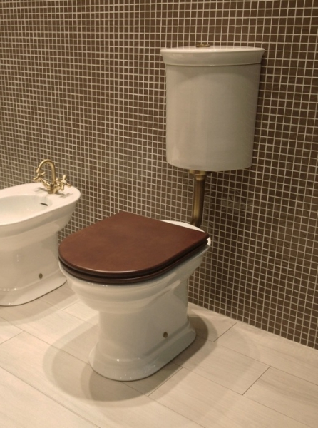 Сиденье Hatria Dolcevita YXXG из дерева с микролифтом soft close с бронзовыми петлями. Сиденье предназначено для унитазов серии Hatria Dolcevita.