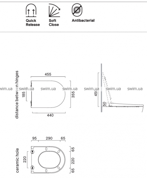 - Сидіння і кришка з плавним закриванням виконані з термореактивної смоли