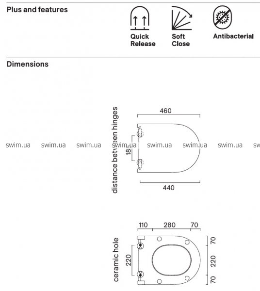 - Сидіння і кришка з плавним закриванням виконані з термореактивної смоли