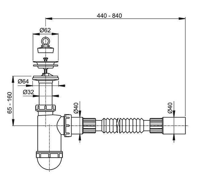 A41 СИФОН ДЛЯ УМЫВАЛЬНИКА Ø40 С НЕРЖАВЕЮЩЕЙ РЕШЕТКОЙ Ø63 С ГИБКИМ СОЕДИНЕНИЕМ A710