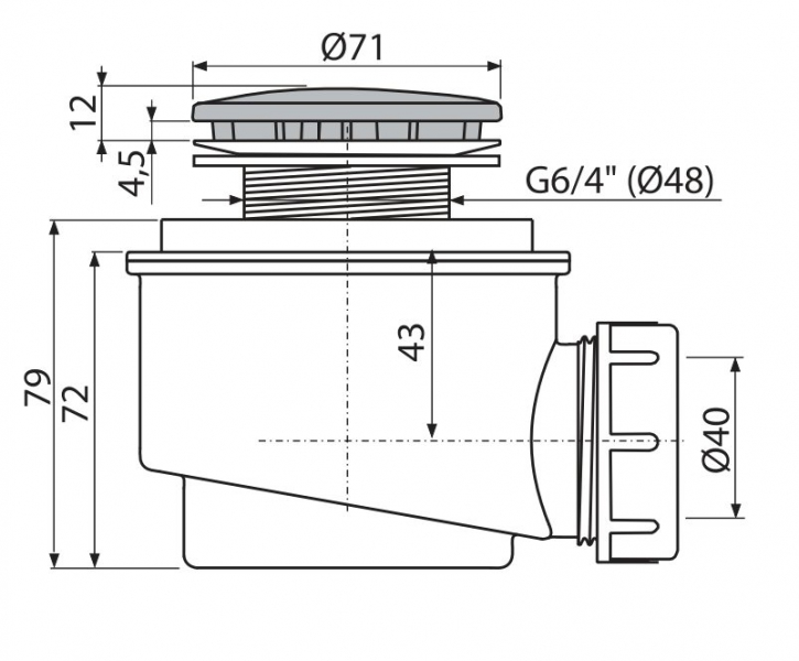 - Для душевых поддонов со сливным отверстием Ø52 мм
