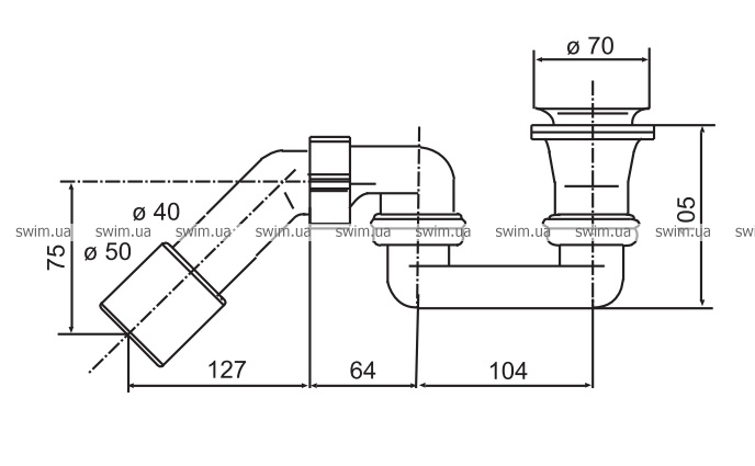 - Для душевого поддона и душевой кабины со сливным отверстием Ø52 мм