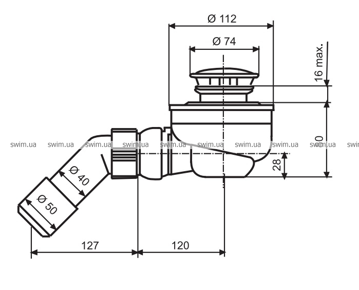 - Для душевого поддона со сливным отверстием Ø52 мм