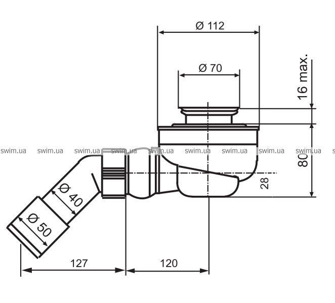 - Для душевого поддона со сливным отверстием Ø52 мм
