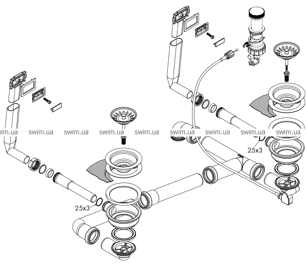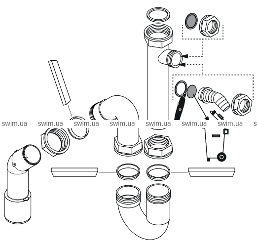 • состоит из: комплекта стока и перелива, корзины-сита для стока, сифона, набора для автоматического слива