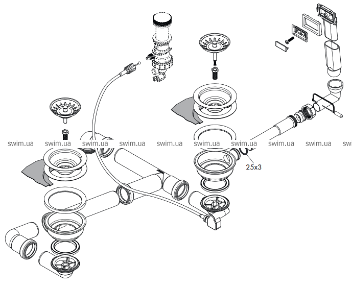 - состоит из: комплекта стока и перелива, корзины-сита для стока, сифона, набора для автоматического слива
