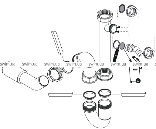 - 1 1/2 "с компактной дренажной трубой и сифоном