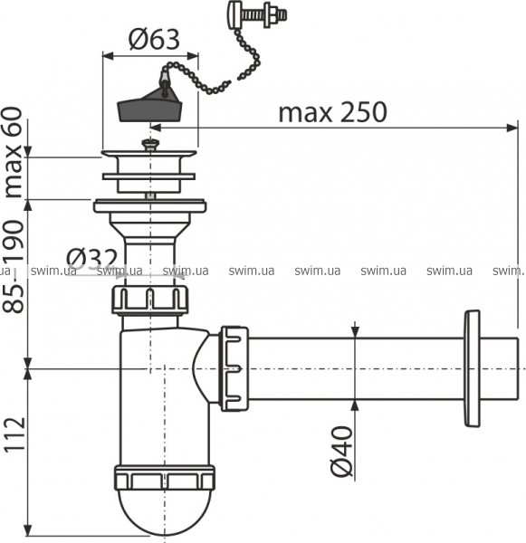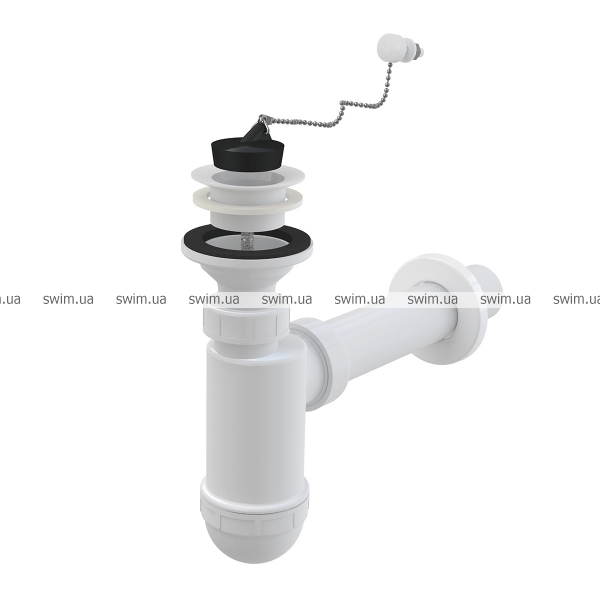 Сифон для умивальника DN 40 з пластмасовою решіткою DN 63, ланцюжок