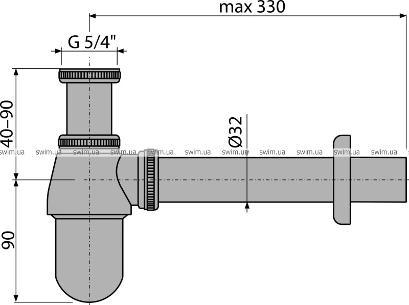 Сифон для умивальника Alca A431 DN 32 з накидною гайкою