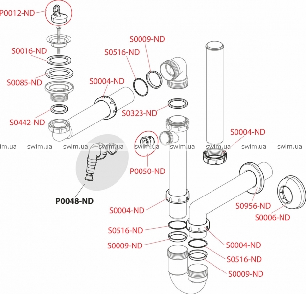 - Різьбове з'єднання 6/4 "для підключення зливу мийки або раковини