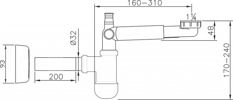 Сифон подходит для умывальников, которые крепятся на столешницы или в тумбы. Пространство в нижнем ящике мебели не ограничено сифоном. Ящик шкафа не отделяется и, таким образом, сохраняет внутреннее пространство для хранения. Подходит в сочетании с умывальником.