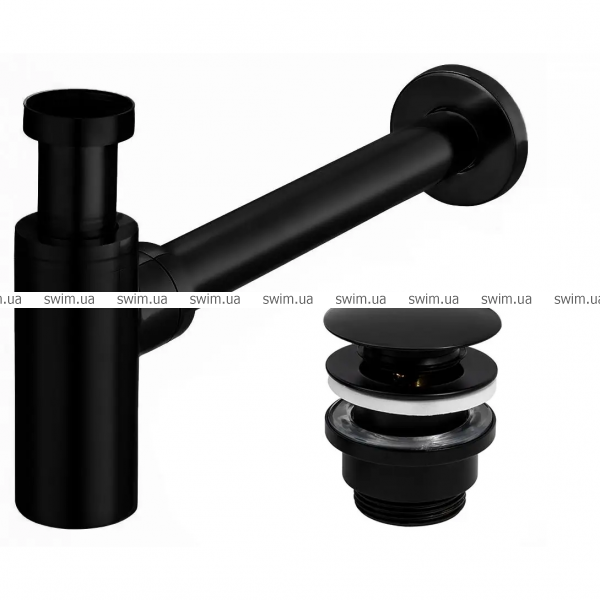 Сифон для умывальника Rea с донным клапаном, черный, универсальный (REA-A5215) - латунный бутылочный сифон, подходит для всех раковин со стандартным сливным отверстием 45 мм. В комплект входят все гайки и прокладки, необходимые для сборки и использования.