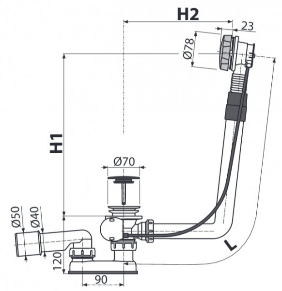 Сифон для ванны Alca Plast A550KM-80