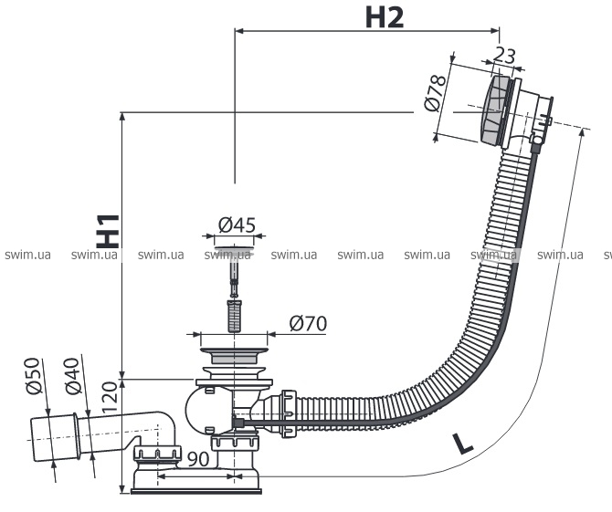 A55K-100 СИФОН ДЛЯ ВАННЫ АВТОМАТ КОМПЛЕКТ МЕТАЛЛ