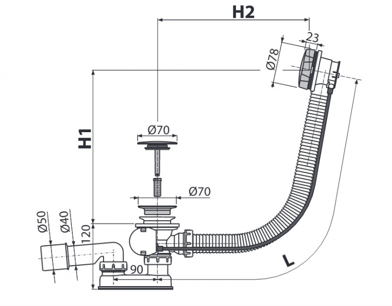 A55KM-120 СИФОН ДЛЯ ВАННЫ АВТОМАТ, МЕТАЛЛ