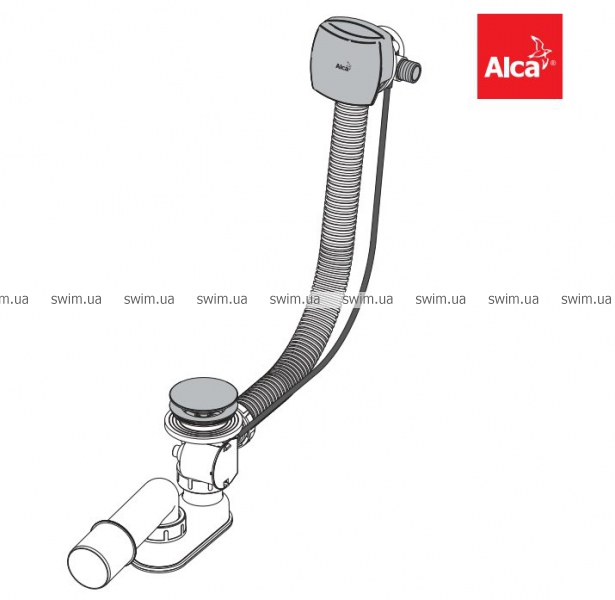 A565CRM1-100 СИФОН ДЛЯ ВАННЫ С НАПУСКОМ ВОДЫ ЧЕРЕЗ ПЕРЕЛИВ ДЛЯ ВАНН С ТОЛСТЫМИ СТЕНКАМИ, ХРОМИРОВАННЫЙ ПЛАСТИК