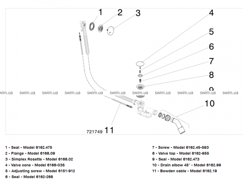 - Донный клапан - нержавеющая сталь