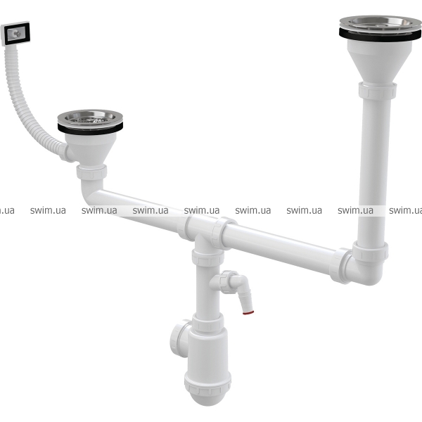 → Сифон для здвоєної мийки дворівневий Alca A456P з решітками з нержавіючої сталі DN115